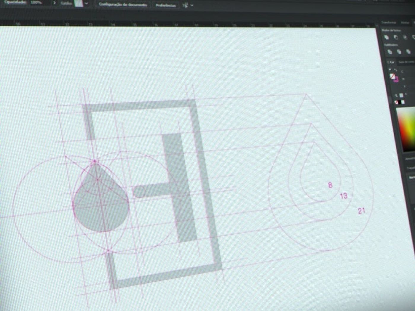 Uma vez que conseguimos gostar de alguns dos rabiscos, vamos para o programa vetorial como o CorelDraw e o Adobe Illustrator (softwares líderes no mercado). O designer com o tempo cria um processo de desenho vetorial, no meu caso prefiro me fundamentar em conceitos e linhas mais geométricas e proporções estudadas a partir das linhas encontradas durante o desenho. Nesta etapa o que importa é a forma, não trabalhamos as cores.
